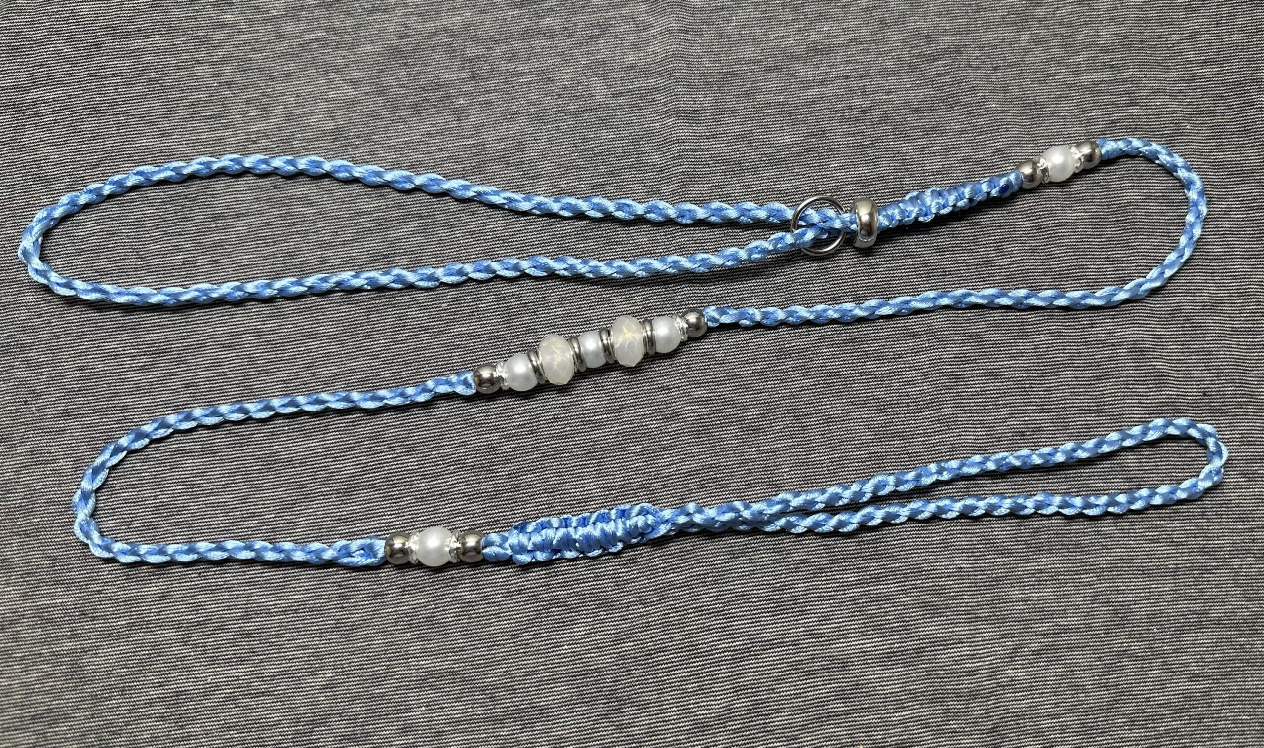Ljusblått handflätat all-in-one utställningskoppel för mindre hundar.